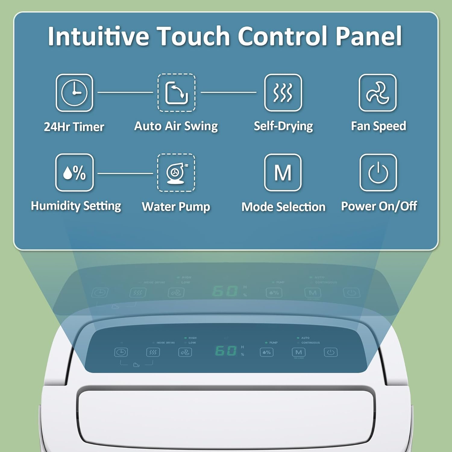 【Intelligent Touch Control】 By integrating a smart control panel, the dehumidifier allows you to control the unit in an easy manner. The humidity reading display helps maximize the convenience to monitor the humidity, adjust the humidity level, set the timer. Simply adjust to your ideal moisture setting, it will smartly sense room humidity and control dehumidification to maintain pre-set humidity levels. 24H TIMER: For preset operation and reduced energy consumption